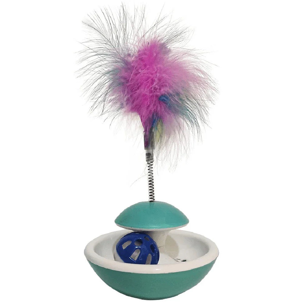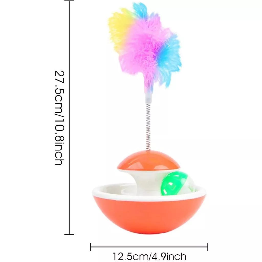 Mantenha o seu gato ativo, entretido e longe do tédio com o brinquedo interativo João Bobo com penas e bolinha. O formato de disco que balança, somado às penas coloridas na mola, desperta o instinto de caça e incentiva muitos saltos e corridas.