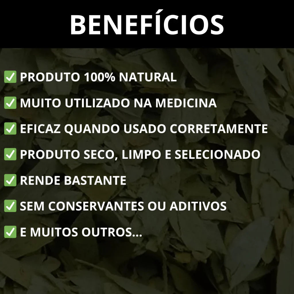 - Produto 100% natural, composto apenas por folhas secas de sene